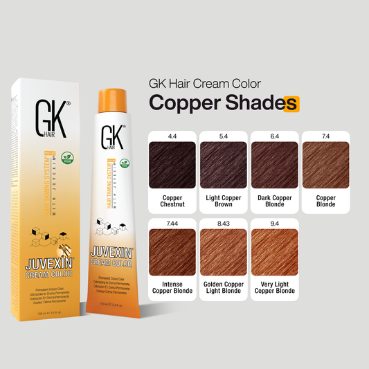 To bring any of these shades to life, start with GK Hair Juvexin Coppers Cream Color.
