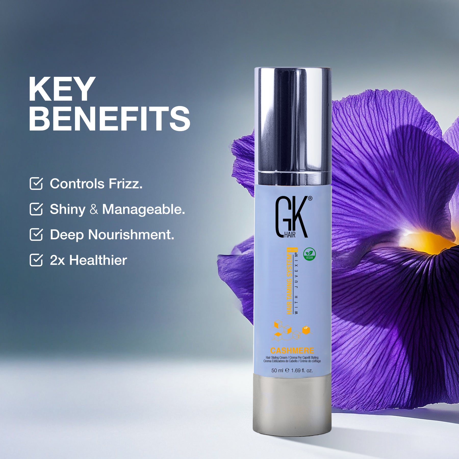 A: Yes, there is. GK Hair Serum is a weightless formula: it provides shine, fights off frizz, sedates flyaways, and provides body without weighing down the hair whereas, Cashmere is used to detangle the hair, and to provide conditioning and comes in a creamy consistency that is also an excellent blow drying aid.